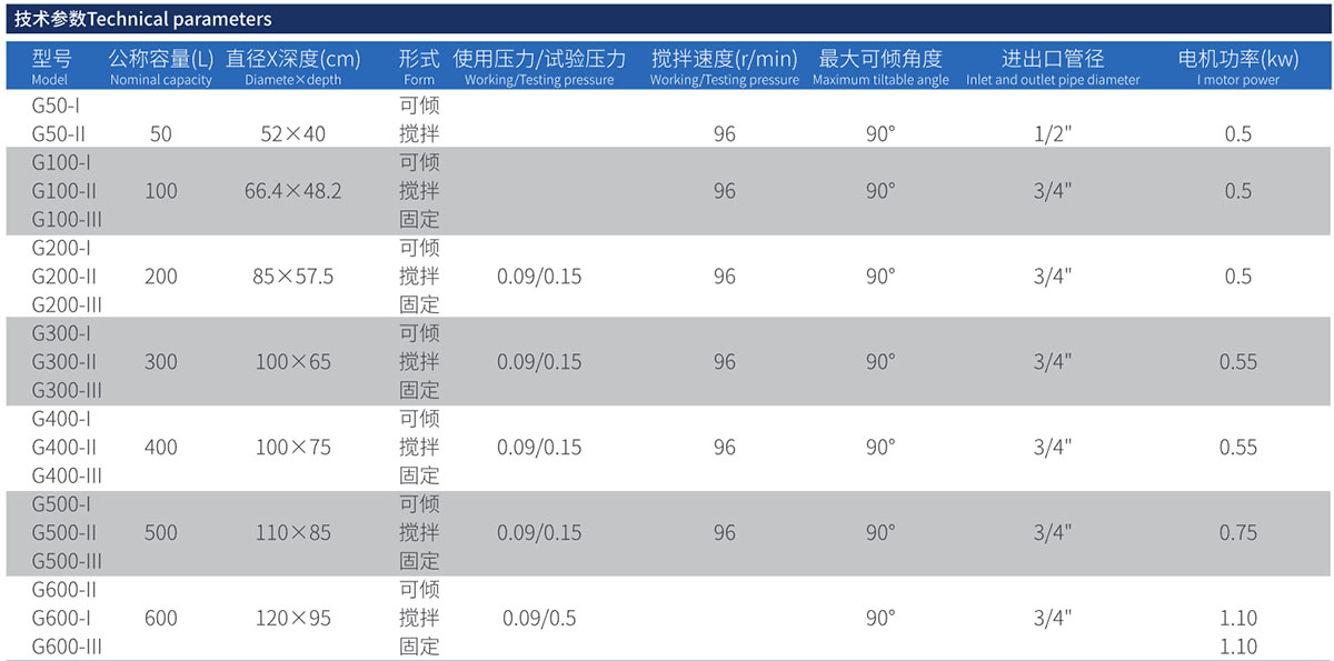 ● G型为固定式夹层锅,QG型为可倾式夹层锅,JG型为固定搅拌式夹层锅,QJG型为可倾式搅拌夹层锅。