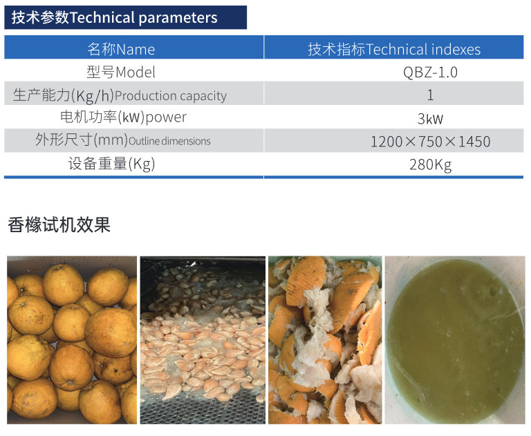 该设备适用于金桔、百香果、柠檬、胡柚、柑橘、桔子、山竹等水果类的榨汁。水果无需分级和去皮,可直接进行榨汁。