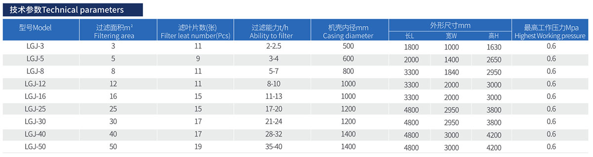 ● 机壳密封、垂直滤叶、结构紧凑、运动部件少、易维修保养。