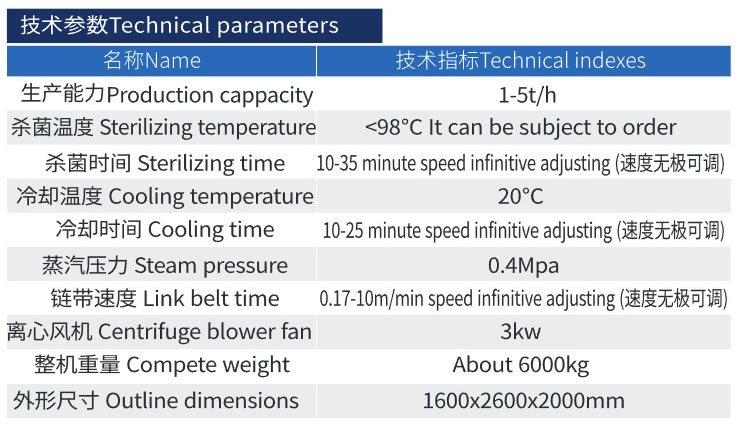 本机是消化吸收德国技术同类产品的基础上,全新设计的,专门应用于乳品、饮料、果冻的二次杀菌,整机符合包装产品接触部分全部采用SUS304不锈钢制作,大链板、链轮也采用同种原料,具有抗酸碱、耐腐蚀的作用,水箱由蒸汽加热、蒸汽用量由蒸汽电磁阀自动控制,热水可充分利用,整机设计合理,制造精良,运作稳定,美观大方。