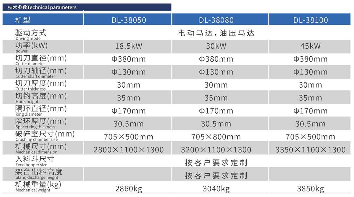 双刀轴式结构。使用多片爪式刀具,并与刀轴配合做多角度变化,切割时省力,切撕力强,具有强劲破碎能力;